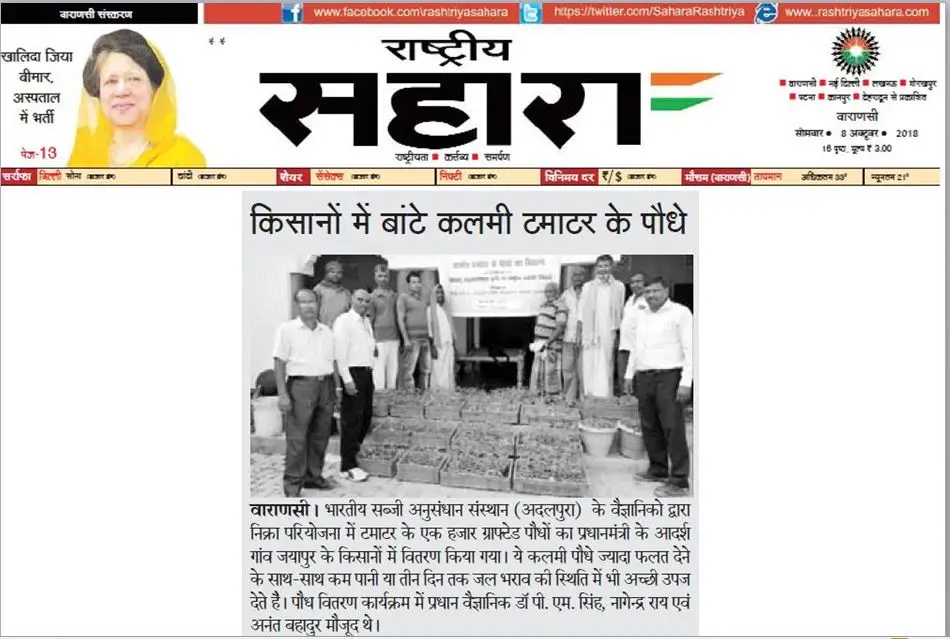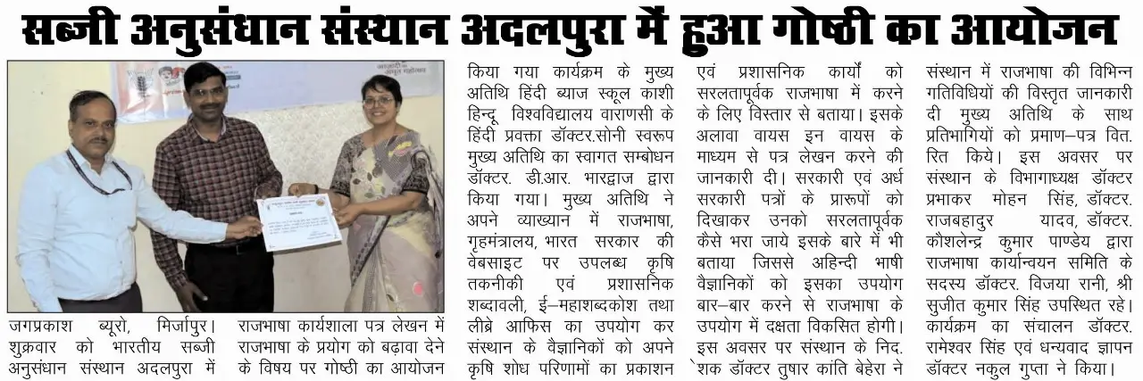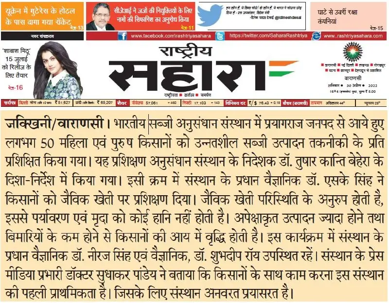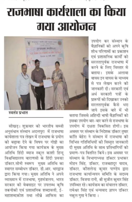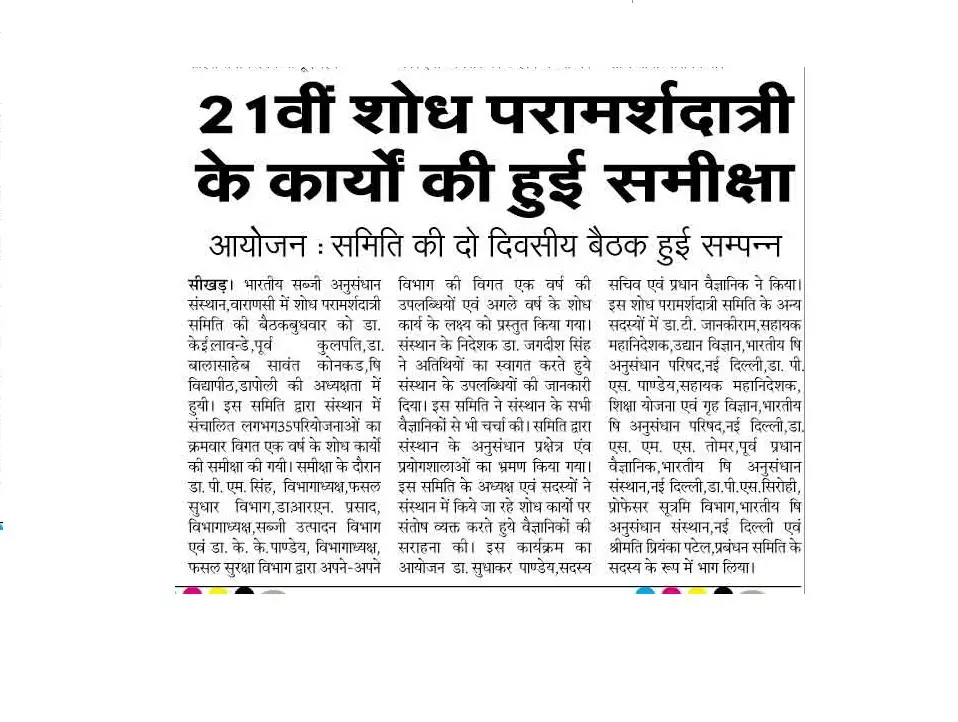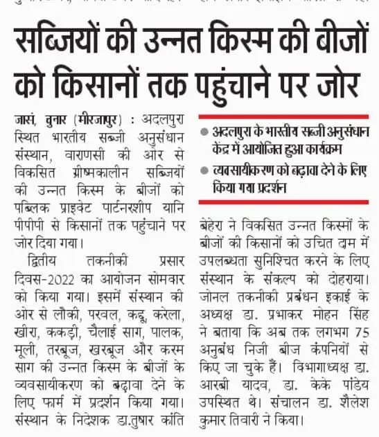 Newspaper clippings and print media coverage of ICAR-IIVR activities, programmes and research initiatives.